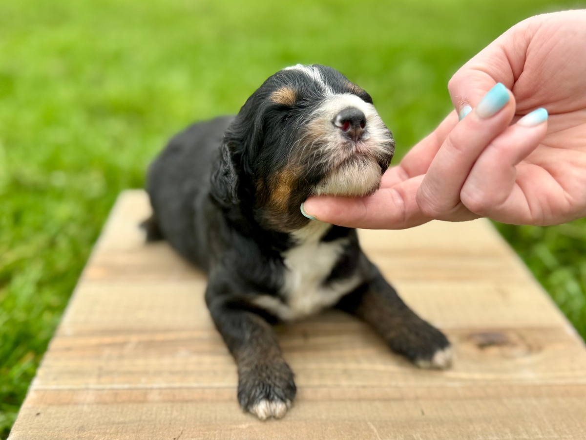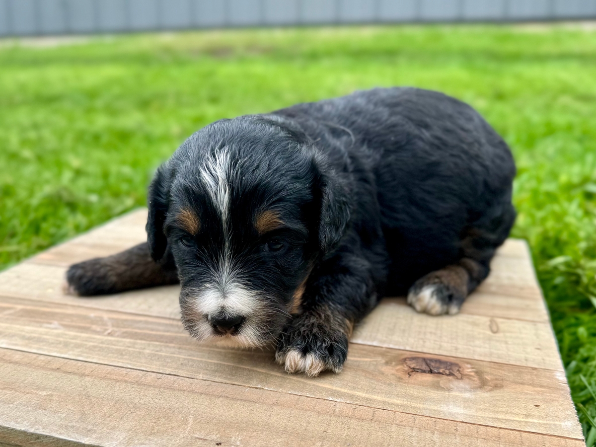 This Mini Bernedoodle puppy will be ready to go to its new home on Tuesday, June 2nd, 2026! Will be up to date on shots and wormings.
