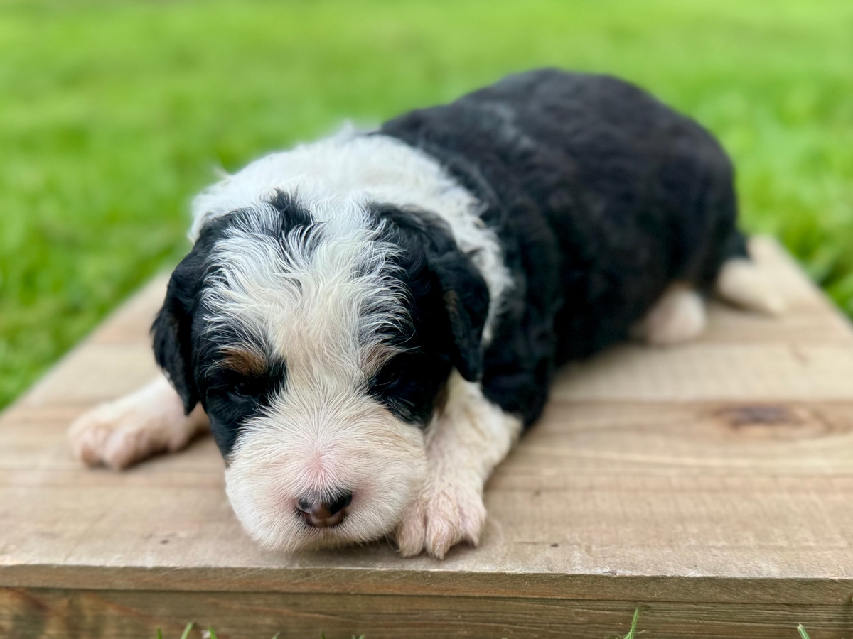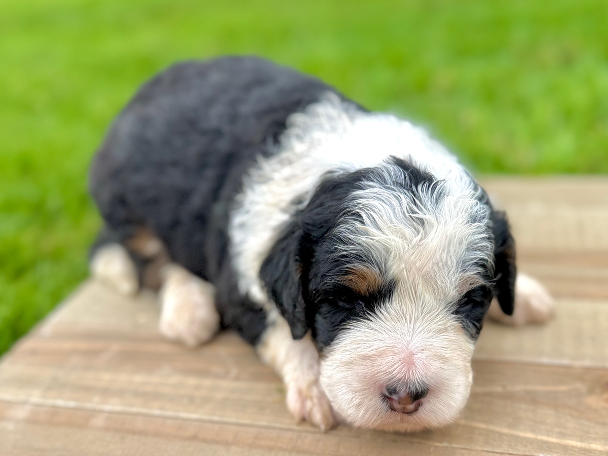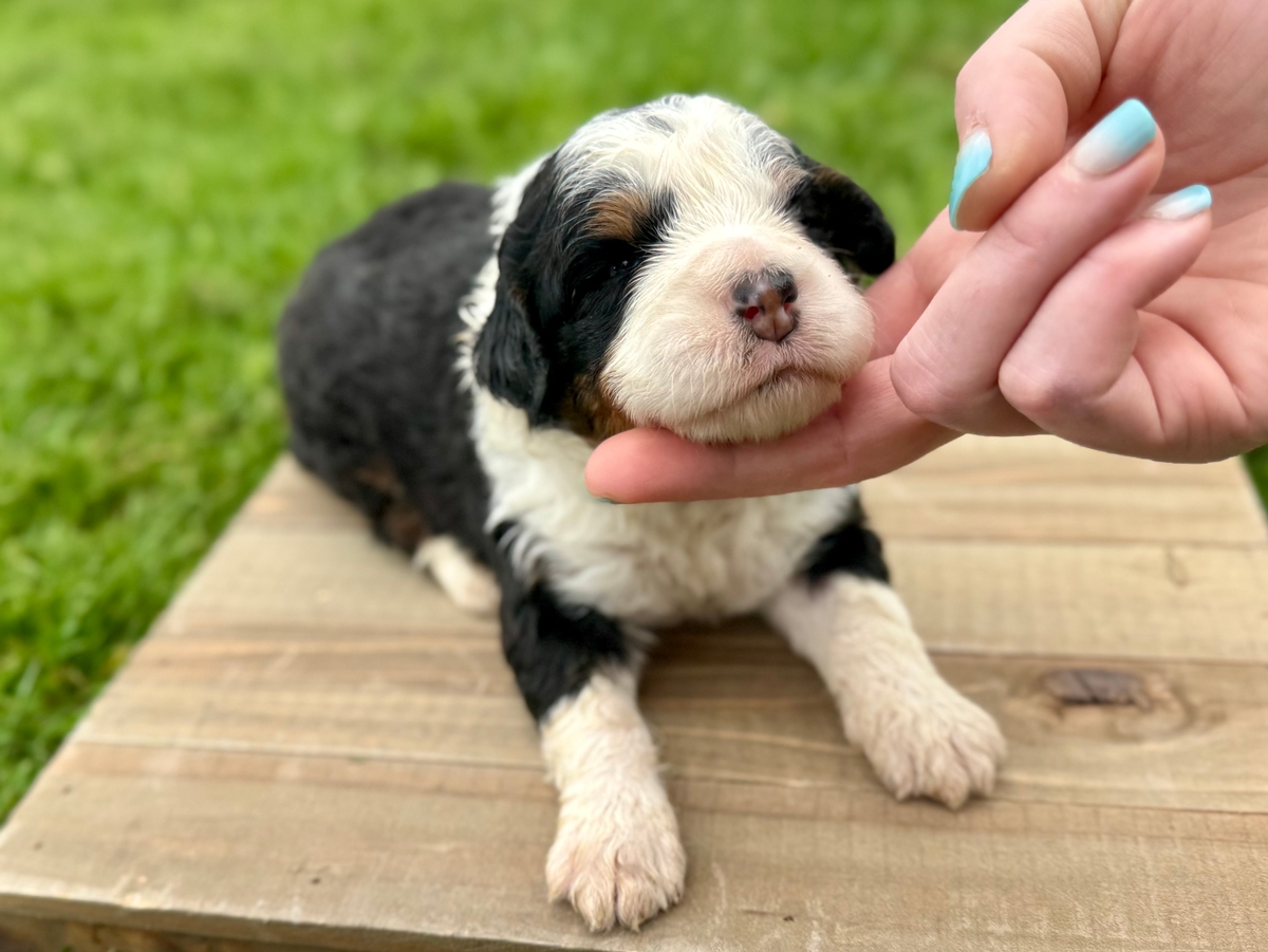 This Mini Bernedoodle puppy will be ready to go to its new home on Tuesday, June 2nd, 2026! Will be up to date on shots and wormings.