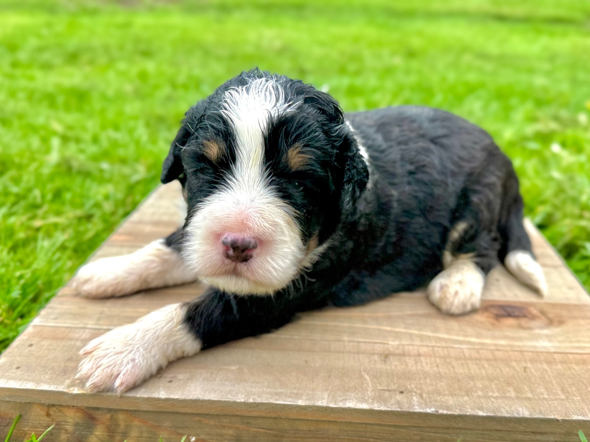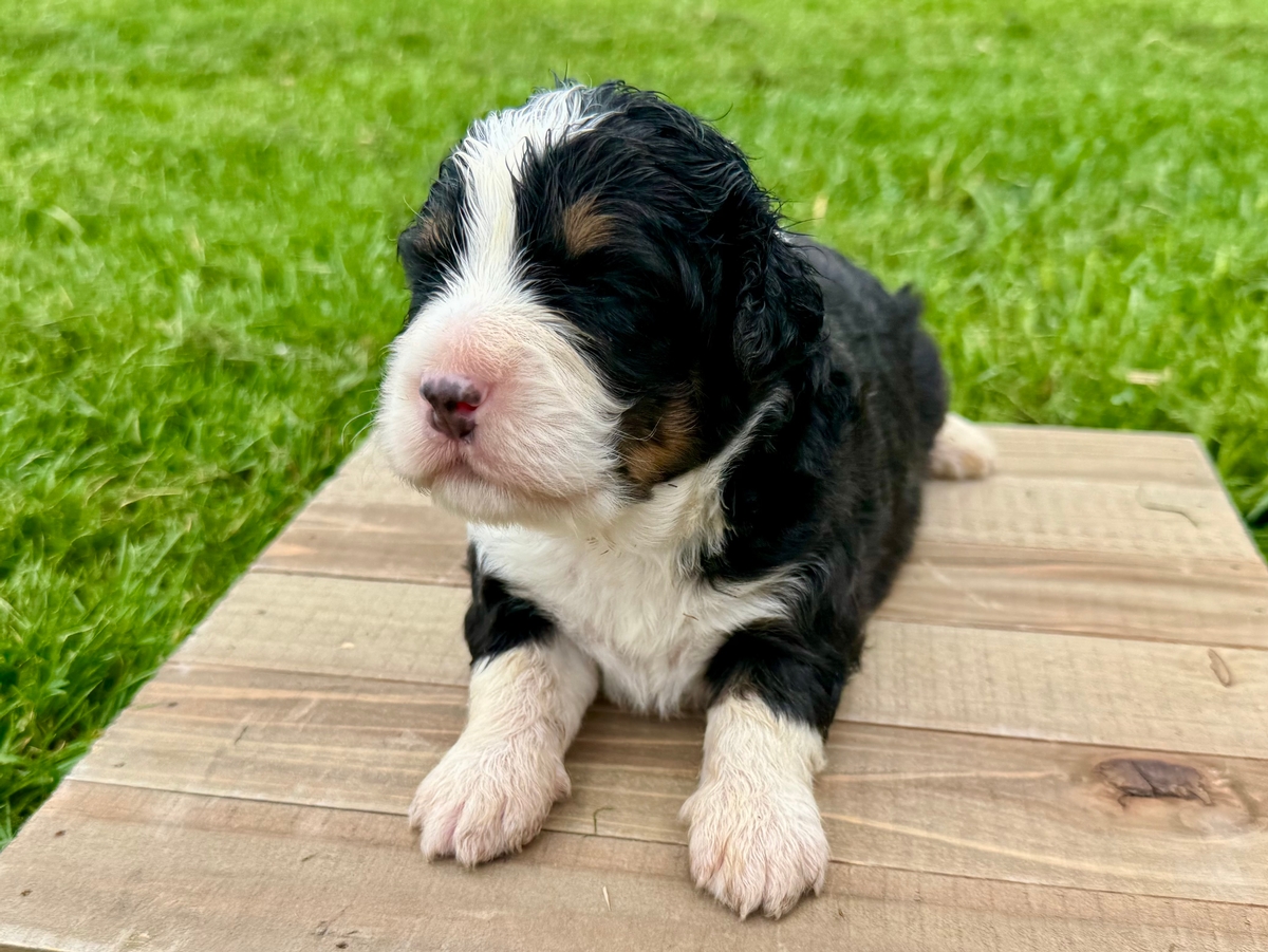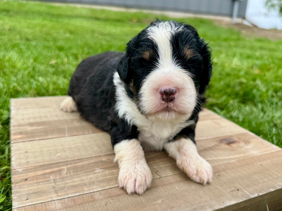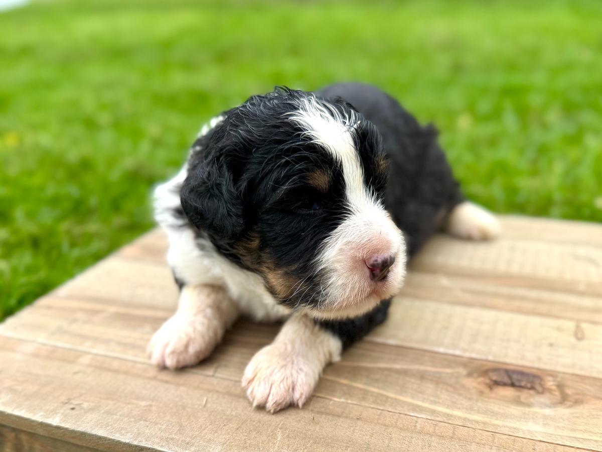 Reserved for Kate A. from Texas! This Mini Bernedoodle puppy will be ready to go to its new home on Tuesday, June 2nd, 2026! Will be up to date on shots and wormings.