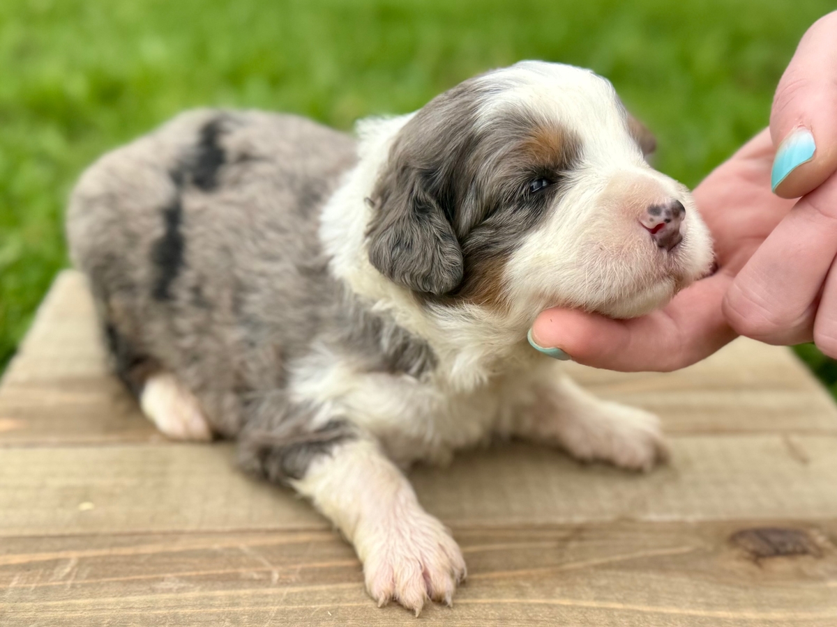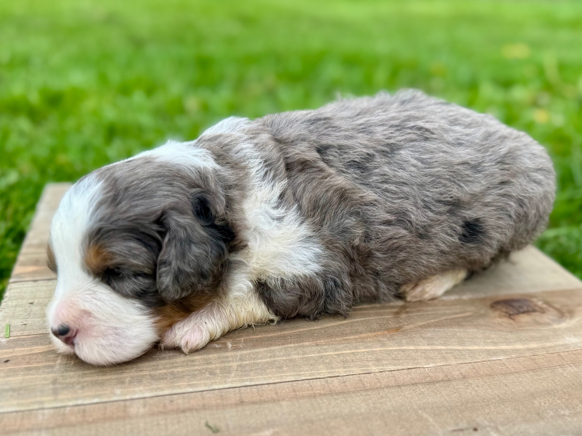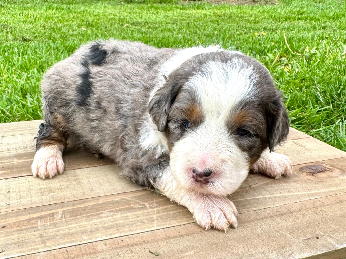 Reserved for Jonah C. from Nebraska! This Mini Bernedoodle puppy will be ready to go to its new home on Tuesday, June 2nd, 2026! Will be up to date on shots and wormings.